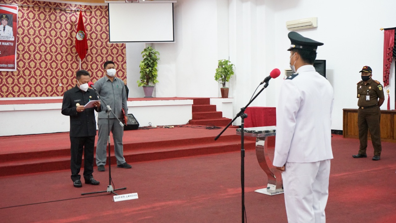 Channeltujuh.com, NGABANG — Wakil Bupati Landak Herculanus Heriadi, melantik Kepala Desa (Kades) Nyayum, Kecamatan Kuala Behe, Kabupaten Landak, Provinsi Kalimantan Barat, pelantikan kades yang dilangsungkan di aula utama Kantor Bupati Landak ini merupakan tahapan akhir dari rangkaian proses pemilihan kades antar waktu Desa Nyayum tahun 2021 yakni Nikodemus Ismail.