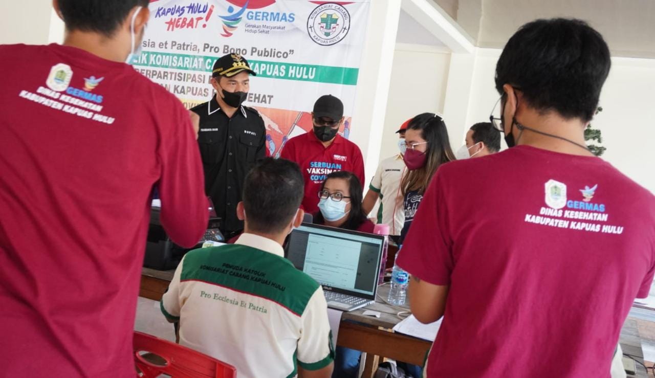 Channeltujuh.com, PADUA MENDALAM — Bupati Kapuas Hulu Fransiskus Diaan yang akrab disapa Sis meninjau pelaksanaan vaksin yang di inisiator oleh Organisasi Pemuda Katolik Cabang Kapuas Hulu di Desa Padua Mendalam, Kecamatan Putussibau Utara, Kabupaten Kapuas Hulu, Provinsi Kalimantan Barat.