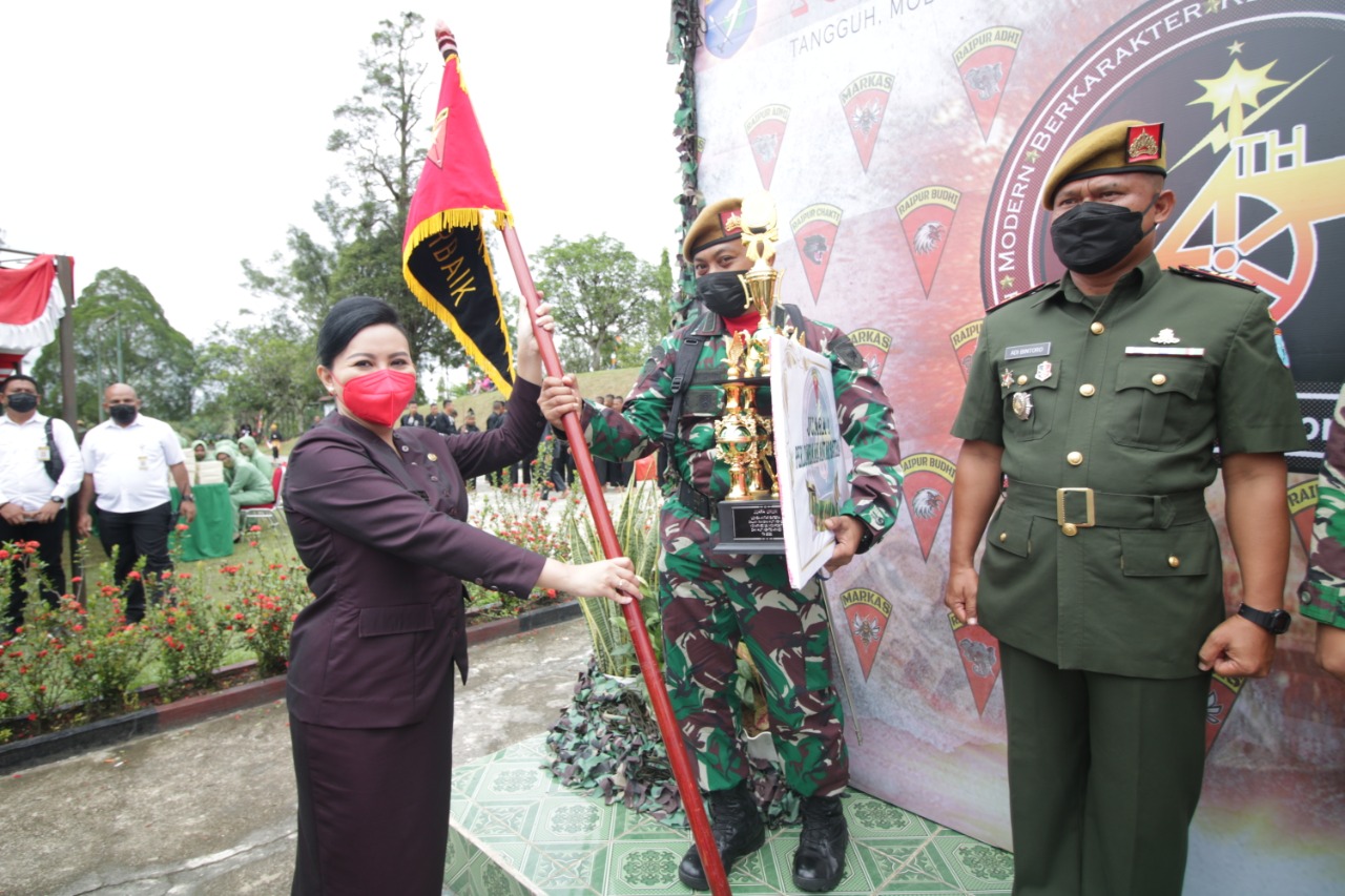 Channeltujuh.com, NGABANG – Bupati Landak Karolin Margret Natasa menghadiri hari ulang tahun (HUT) ke-24 Batalyon Artileri Medan (Yon Armed) 16/Komposit tahun 2021 dengan dihadiri Wakil Kepala Kepolisian Resor (Wakapolres) Landak, Ketua Komisi A Dewan Perwakilan Rakyat Daerah (DPRD) Landak Cahyatanus, Ketua Majelis Ulama Indonesia (MUI) Kabupaten Landak dan Direktur Rumah Sakit Umum Daerah (RSUD) Kabupaten Landak.