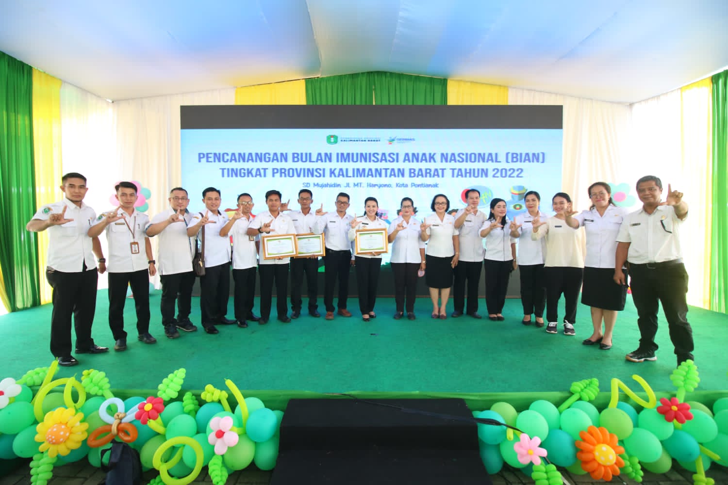 Channeltujuh.com, PONTIANAK – Bupati Landak Karolin Margret Natasa mendapatkan penghargaan dari Gubernur Kalimantan Barat atas komitmen dan kerja kerasnya dalam keberhasilan pelaksanaan imunisasi rutin dengan cakupan 96,4% Imunisasi Dasar Lengkap pada tahun 2021 yang bertempat di SD Mujahidin Pontianak, Rabu (18/05/22).