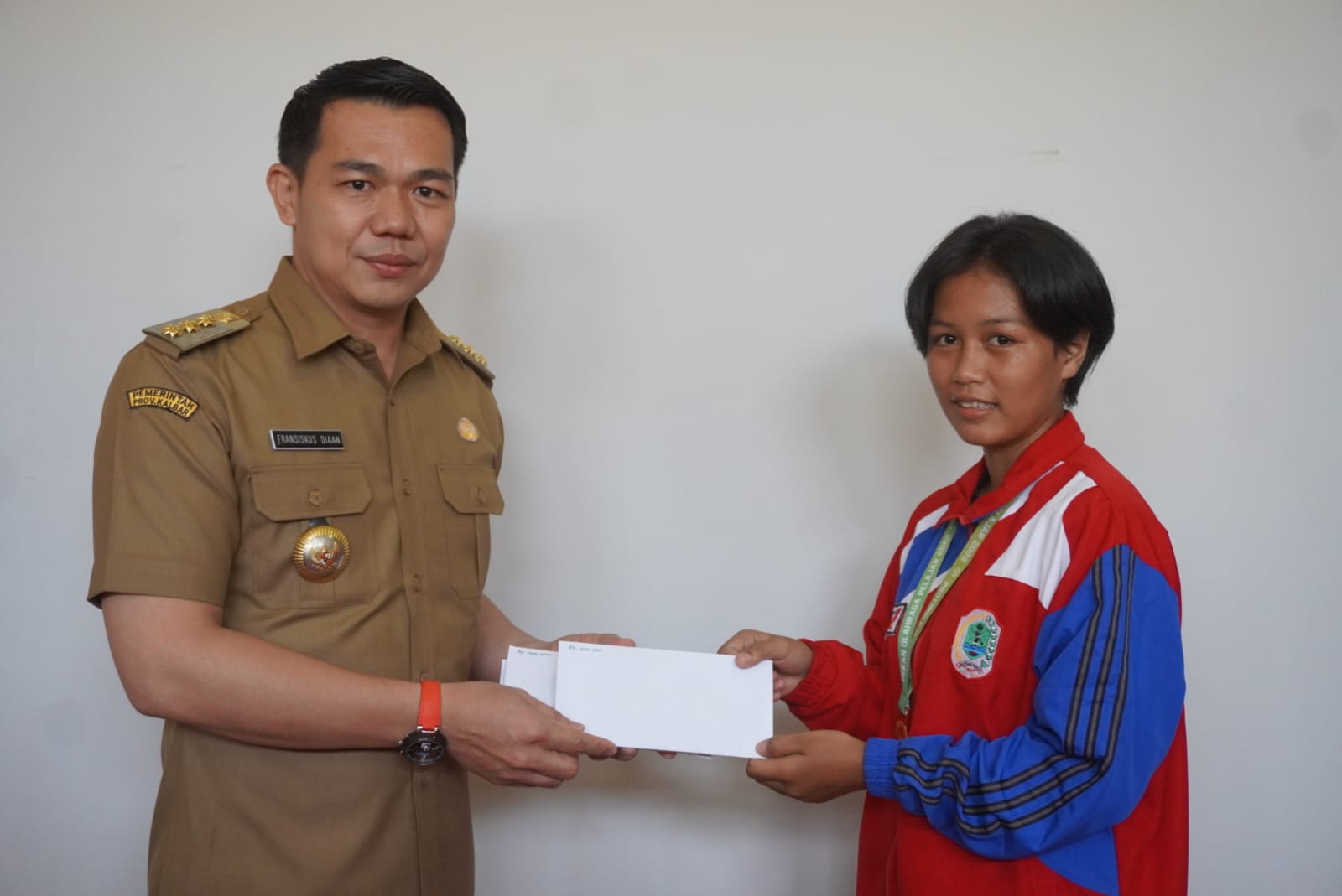Channeltujuh.com, PUTUSSIBAU – Meski Kabupaten Kapuas Hulu belum mampu meraih medali emas dan lerak pada ajang Pekan Olahraga Pelajar Daerah (Popda) Kalimantan Barat (Kalbar) 2022. Bupati Kapuas Hulu Fransiskus Diaan yang akrab disapa Sis tetap menepati janjinya untuk memberikan bonus bagi para atlet yang berhasil membawa pulang medali. Bahkan bonus itu juga diberikan pada para pelatihnya.