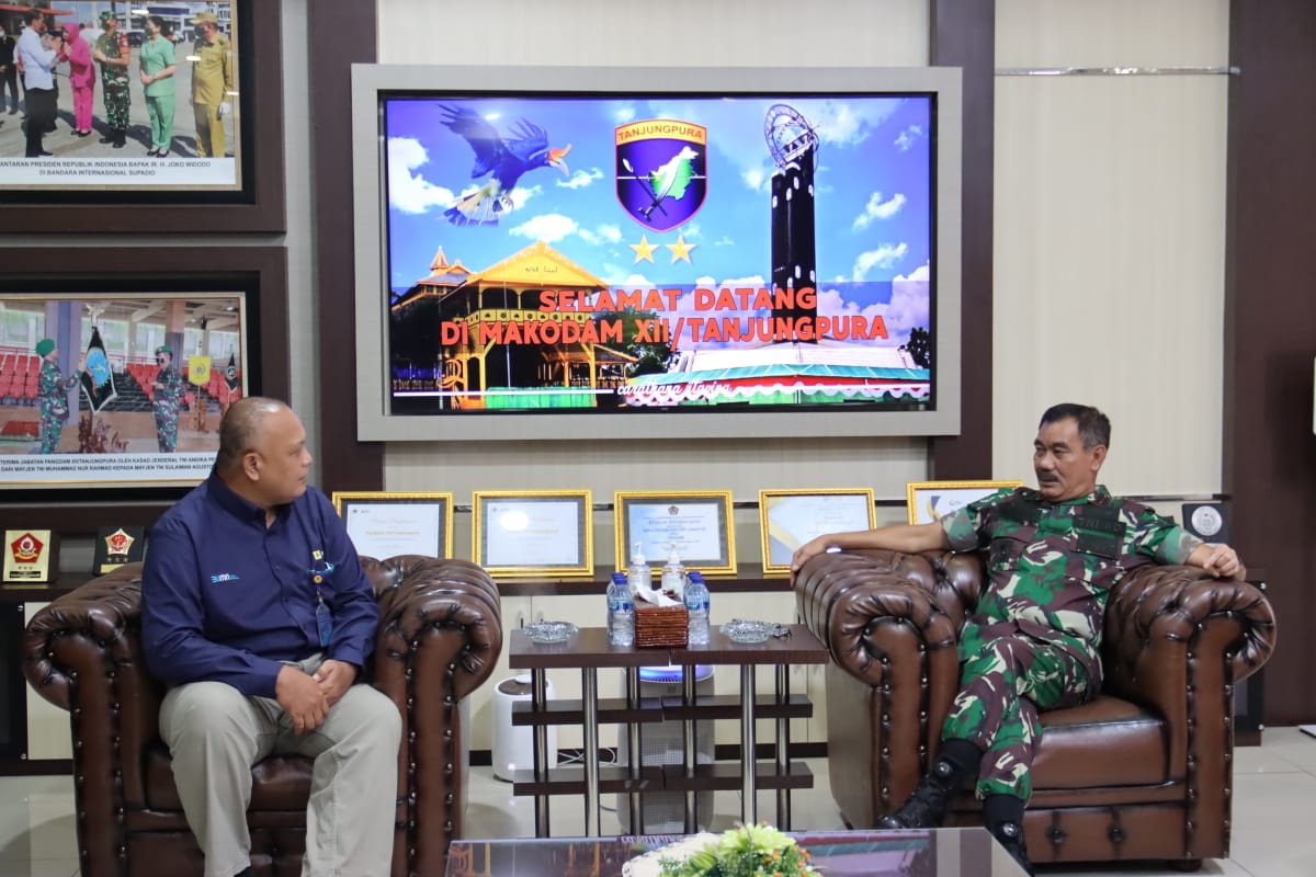 Channeltujuh.com, KUBU RAYA — Panglima Komando Daerah Militer (Pangdam) XII/Tanjungpura (Tpr) Mayjen TNI Sulaiman Agusto, menerima kunjungan dari General Manager (GM) Perseroan Terbatas Perusahaan Listrik Negara (PT. PLN) Unit Induk Wilayah (UIW) Kalimantan Barat, Mochammad Soffin Hadi.