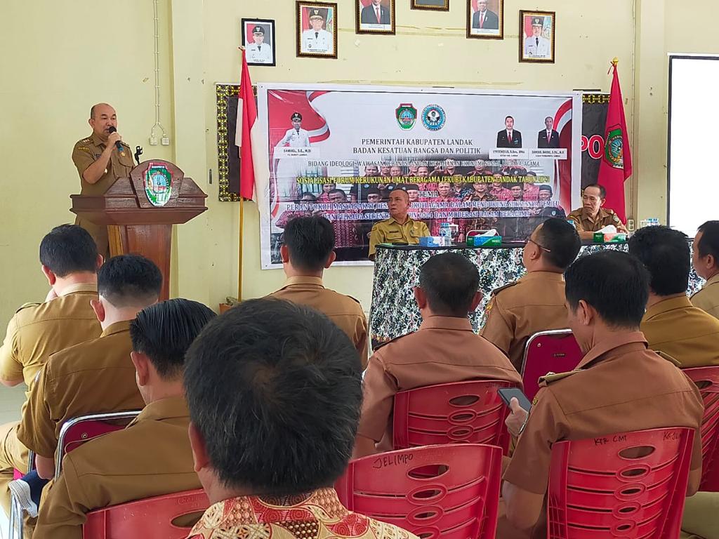 Pada kesempatan tersebut Samuel menyampikan bahwa kegiatan sosialisasi ini digelar dalam rangka untuk semakin memperkuat sinergi dalam memelihara kerukunan umat beragama di Kabupaten Landak, terlebih menjelang diselenggarakannya Pemilihan Umum (Pemilu) dan Pemilihan Kepala Daerah (Pilkada) serentak pada tahun 2024 mendatang.
