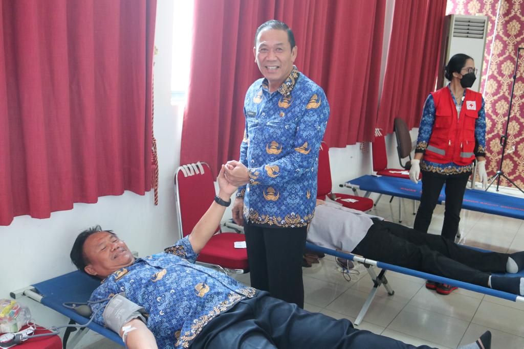Channeltujuh.com, NGABANG — Sekretaris Daerah (Sekda) Kabupaten Landak Vinsensius, membuka kegiatan aksi donor darah dalam rangka Hari Ulang Tahun (HUT) Palang Merah Indonesia (PMI) ke-78 di Aula Kecil Kantor Bupati Landak, Ngabang, Kabupaten Landak, Provinsi Kalimantan Barat.