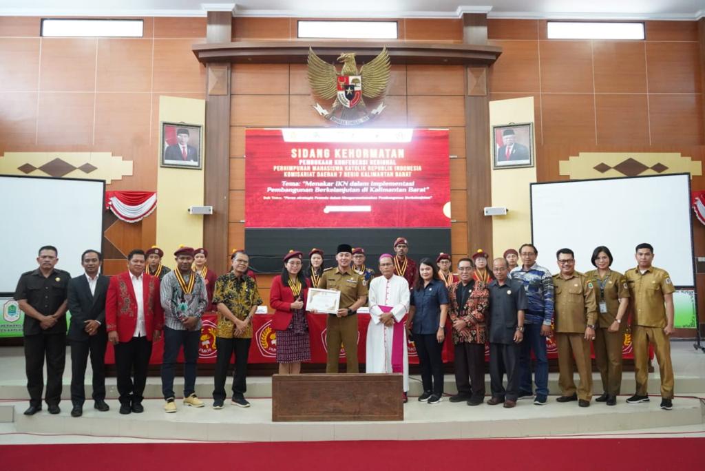 Channeltujuh.com, PUTUSSIBAU — Wakil Bupati (Wabup) Kapuas Hulu Wahyudi Hidayat membuka konferensi study regional Perhimpunan Mahasiswa Katolik Republik Indonesia (PMKRI) regio Kalimantan Barat VII di Ruang Rapat Pari Purna Dewan Perwakilan Rakyat Daerah (DPRD) Kapuas Hulu, di Putussibau, Kabupaten Kapuas Hulu, Provinsi Kalimantan Barat.