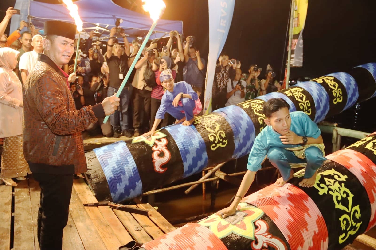 Eksibisi Meriam Karbit dibuka oleh Pejabat (Pj) Gubernur Kalimantan Barat, Harisson, ditandai dengan penyulutan meriam karbit simbolis dimulainya eksibisi permainan tradisional meriam karbit, Selasa 9 April 2024 malam.