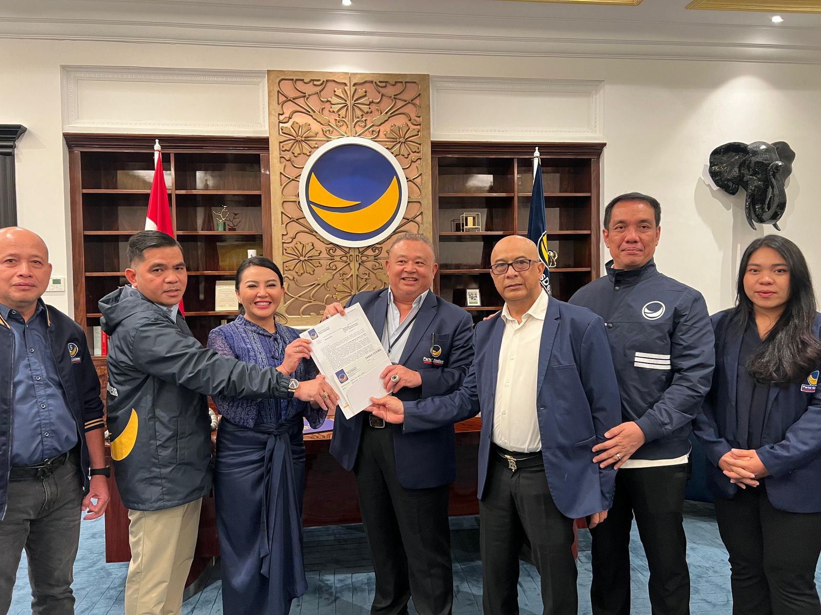 Channeltujuh.com, JAKARTA – Pasangan calon Bupati Landak, Karolin Margret Natasa dan calon Wakil Bupati Landak, Erani menerima langsung surat rekomendasi pasangan Karolin-Erani (KREN) dari Dewan Pimpinan Pusat (DPP) Partai Nasional Demokrat (Nasdem) yang diserahkan langsung oleh Sekretaris Jenderal (Sekjen) Partai Nasdem Hermawi Taslim di Kantor DPP Nasdem (Nasdem Tower) Jakarta.