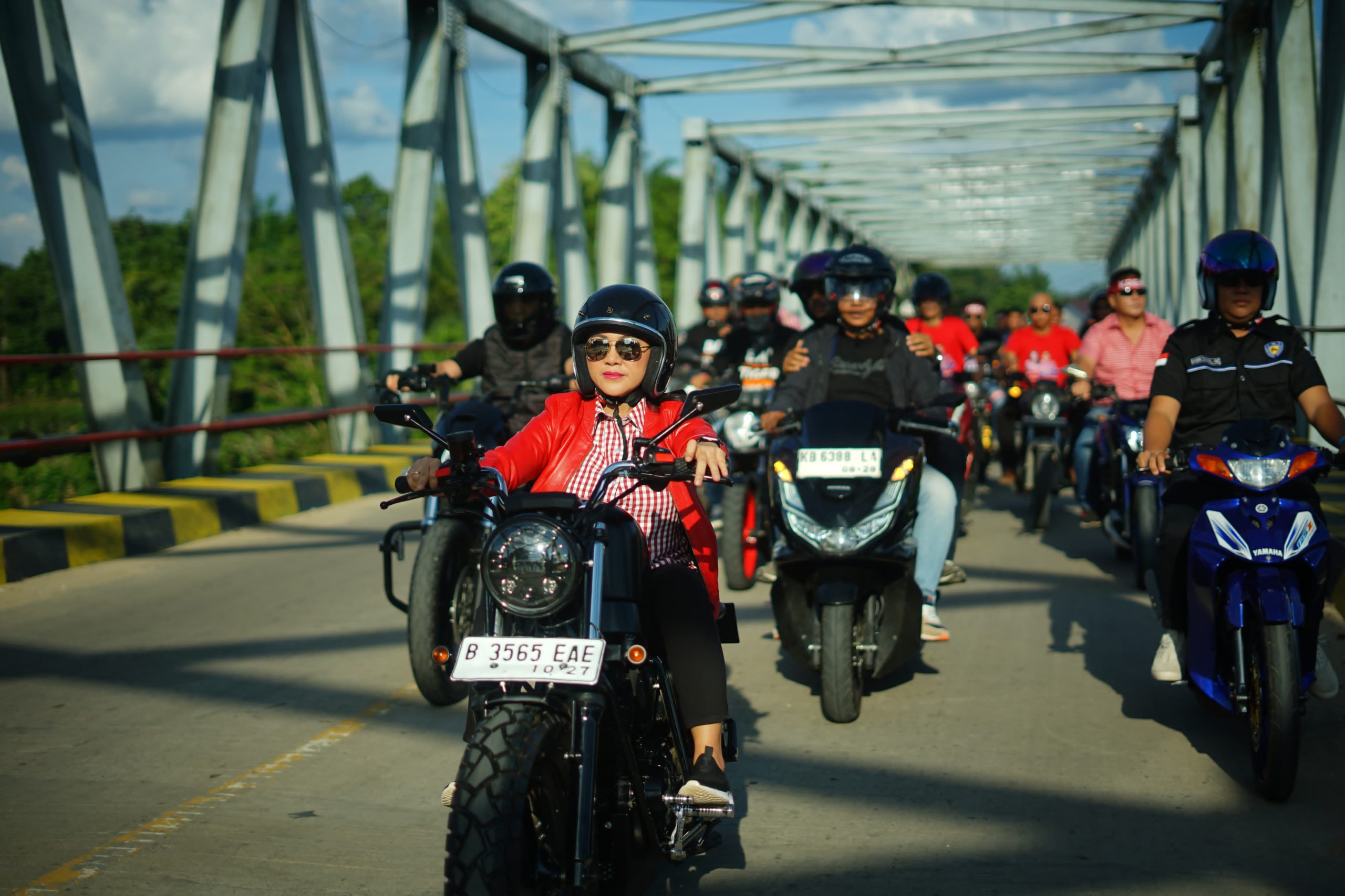 Sebelum menuju GOR Bujakng Nyangko, rombongan iring-iringan bikers bersama calon Bupati Landak Karolin Margret Natasa terlebih dahulu melakukan touring dari lokasi villa bukit Cornelis menuju lokasi GOR Bujakng Nyangko.