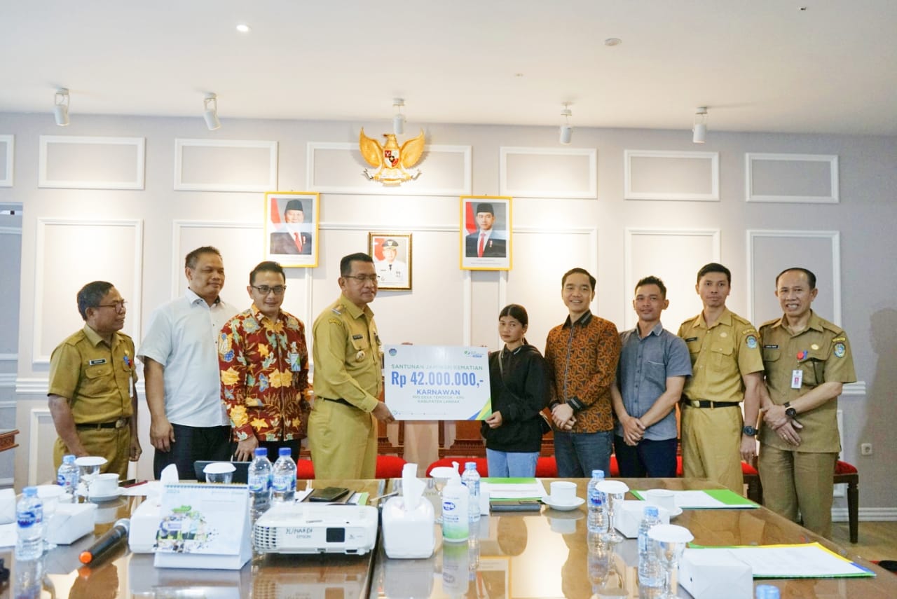 Channeltujuh.com, NGABANG – Pemerintah Kabupaten (Pemkab) Landak menyerahkan santunan dari Badan Penyelenggara Jaminan Sosial (BPJS) Ketenagakerjaan kepada Panitia Pengawas Pemilihan Umum (Panwaslu) Mandor, Panitia Pemungutan Suara (PPS) Desa Temoyok, dan Pegawai Non Aparatur Sipil Negara (ASN) Badan Pengawas Pemilihan Umum (Bawaslu) Landak yang mengalami musibah, bertempat di Ruang Rapat Bupati Landak, Ngabang, Kabupaten Landak, Provinsi Kalimantan Barat.