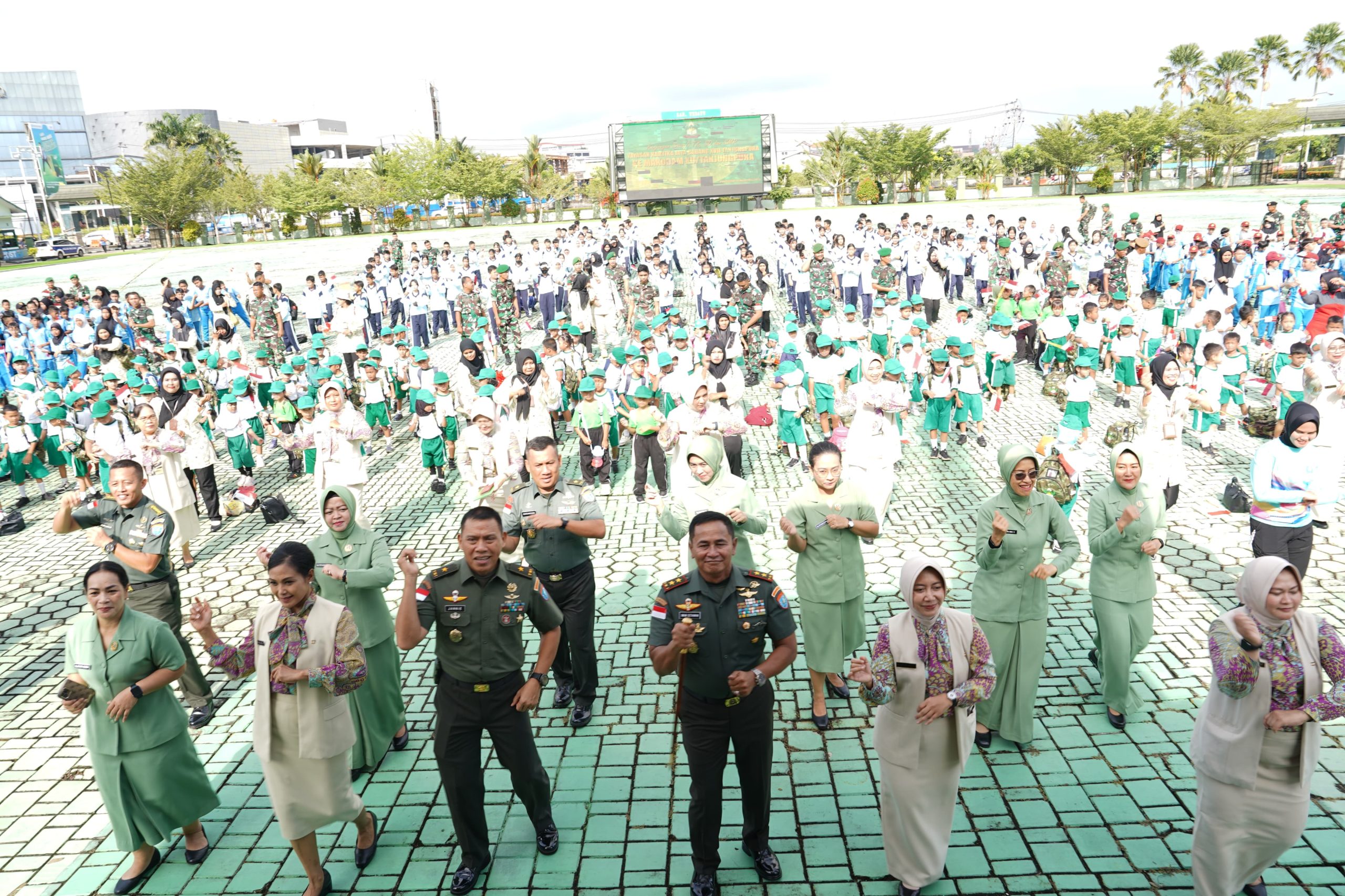 Channeltujuh.com, KUBU RAYA – Panglima Komando Daerah Militer (Pangdam) XII/Tanjungpura (Tpr) Mayor Jenderal (Mayjen) TNI Iwan Setiawan, bernyanyi dan joget komando bersama ribuan anak-anak dari siswa-siswi Taman Kanak-Kanak (TK), Sekolah Dasar (SD) dan Sekolah Menengah Pertama (SMP) Yayasan Kartika Jaya Cabang VII Tanjungpura di Markas Komando Daerah Militer (Makodam) XII/Tpr, Kabupaten Kubu Raya, Provinsi Kalimantan Barat.