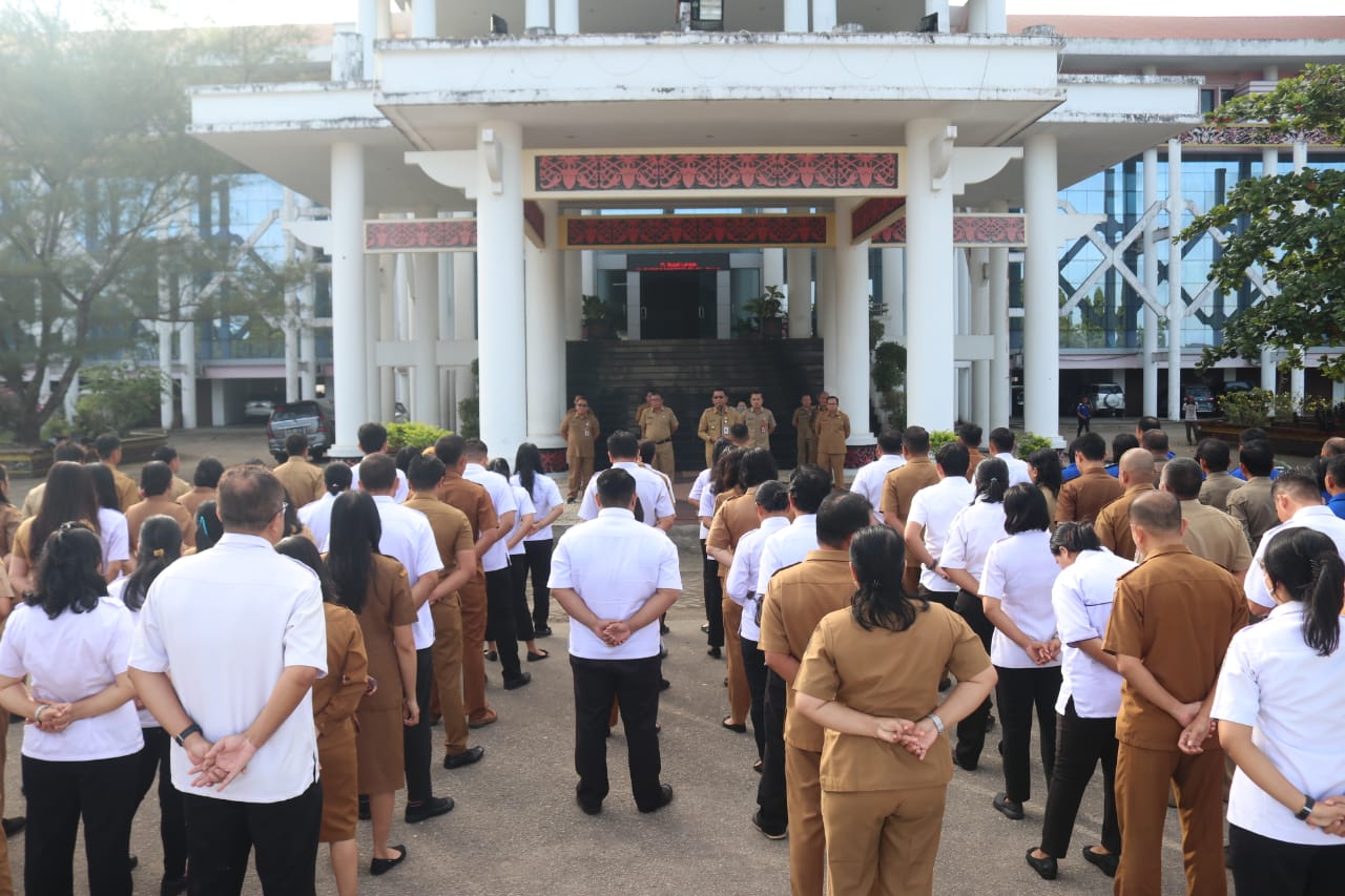 Channeltujuh.com, NGABANG – Penjabat (Pj) Bupati Landak Gutmen Nainggolan memimpin apel rutin senin pagi dalam rangka memberikan sambutan, arahan dan motivasi kepada seluruh Pegawai Negeri Sipil (PNS) di lingkungan Kantor Bupati Landak, Ngabang, Kabupaten Landak, Provinsi Kalimantan Barat.