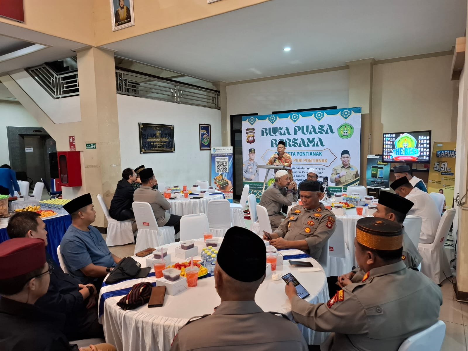 Channeltujuh.com, PONTIANAK – Kepala Kepolisian Resor Kota (Kapolresta) Pontianak, Komisaris Besar Polisi (Kombes Pol) Adhe Hariadi, menghadiri acara buka puasa bersama jajaran Rektorat Universitas Persatuan Guru Republik Indonesia (PGRI) Pontianak yang digelar di lobi utama Universitas PGRI Pontianak, Provinsi Kalimantan Barat.