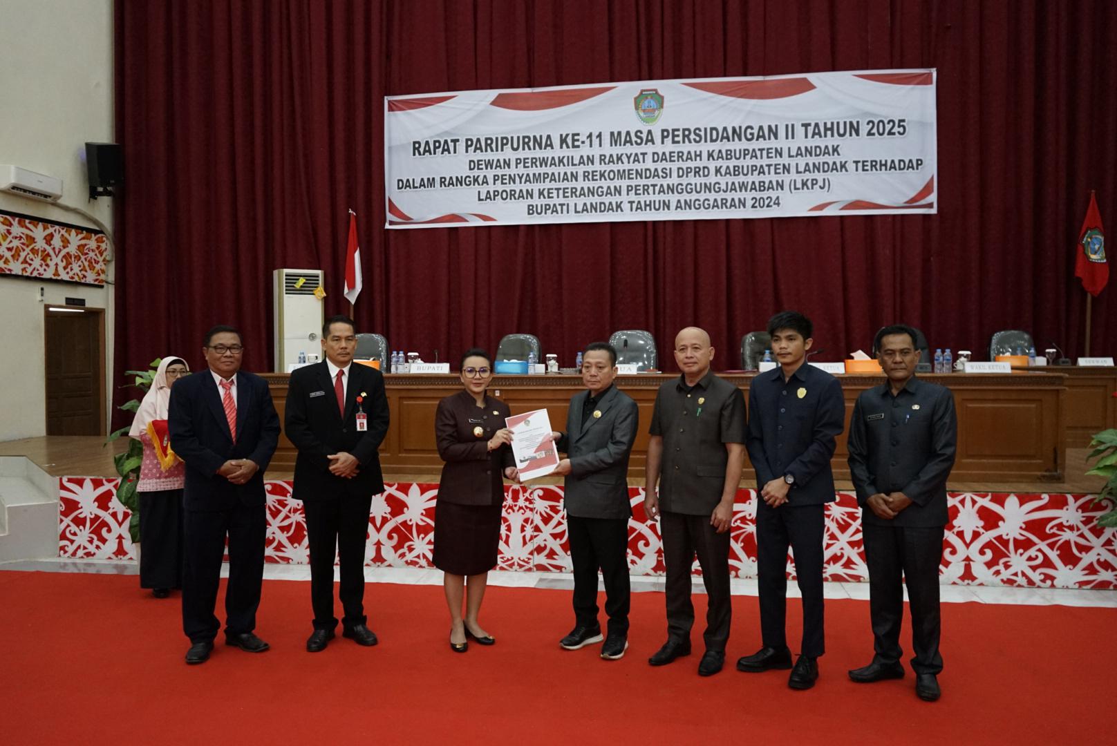 Channeltujuh.com, NGABANG – Dewan Perwakilan Rakyat Daerah (DPRD) Kabupaten Landak melaksanakan rapat paripurna ke-11 masa persidangan kedua tahun 2025, dalam rangka penyampaian rekomendasi terhadap Laporan Keterangan Pertanggungjawaban (LKPJ) Bupati Landak tahun anggaran 2024, di ruang sidang DPRD Landak, Ngabang, Kabupaten Landak, Provinsi Kalimantan Barat.