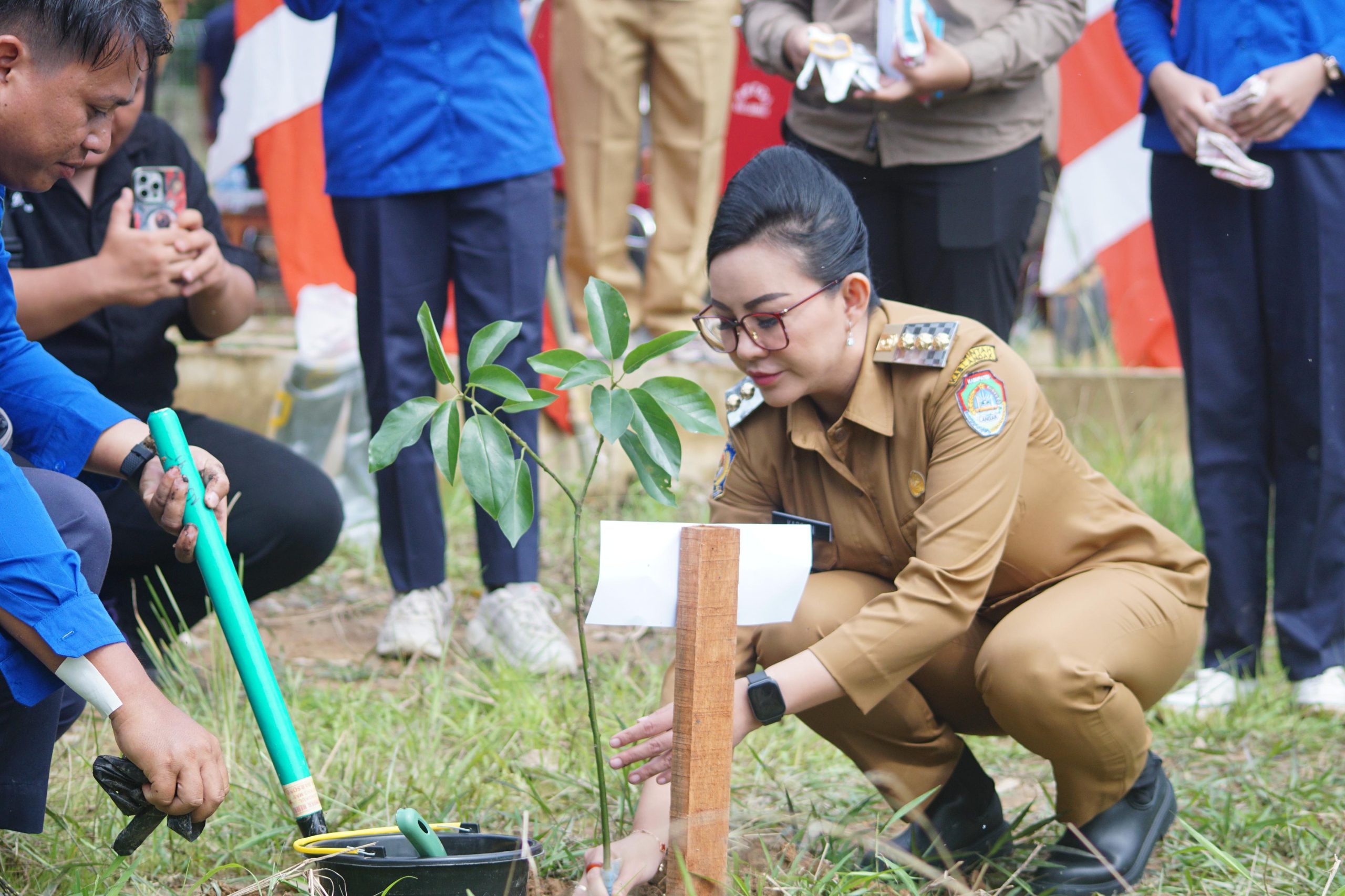 Channeltujuh.com, RAI – Bupati Landak, Karolin Margret Natasa, turut melakukan penanaman pohon produktif jenis buah-buahan dalam peringatan Hari Bumi Sedunia tahun 2025, di lokasi intake Perusahaan Daerah Air Minum (PDAM) Tirta Landak, kawasan pinggiran Sungai Landak, Dusun Rai, Desa Raja, Kecamatan Ngabang, Kabupaten Landak, Provinsi Kalimantan Barat.