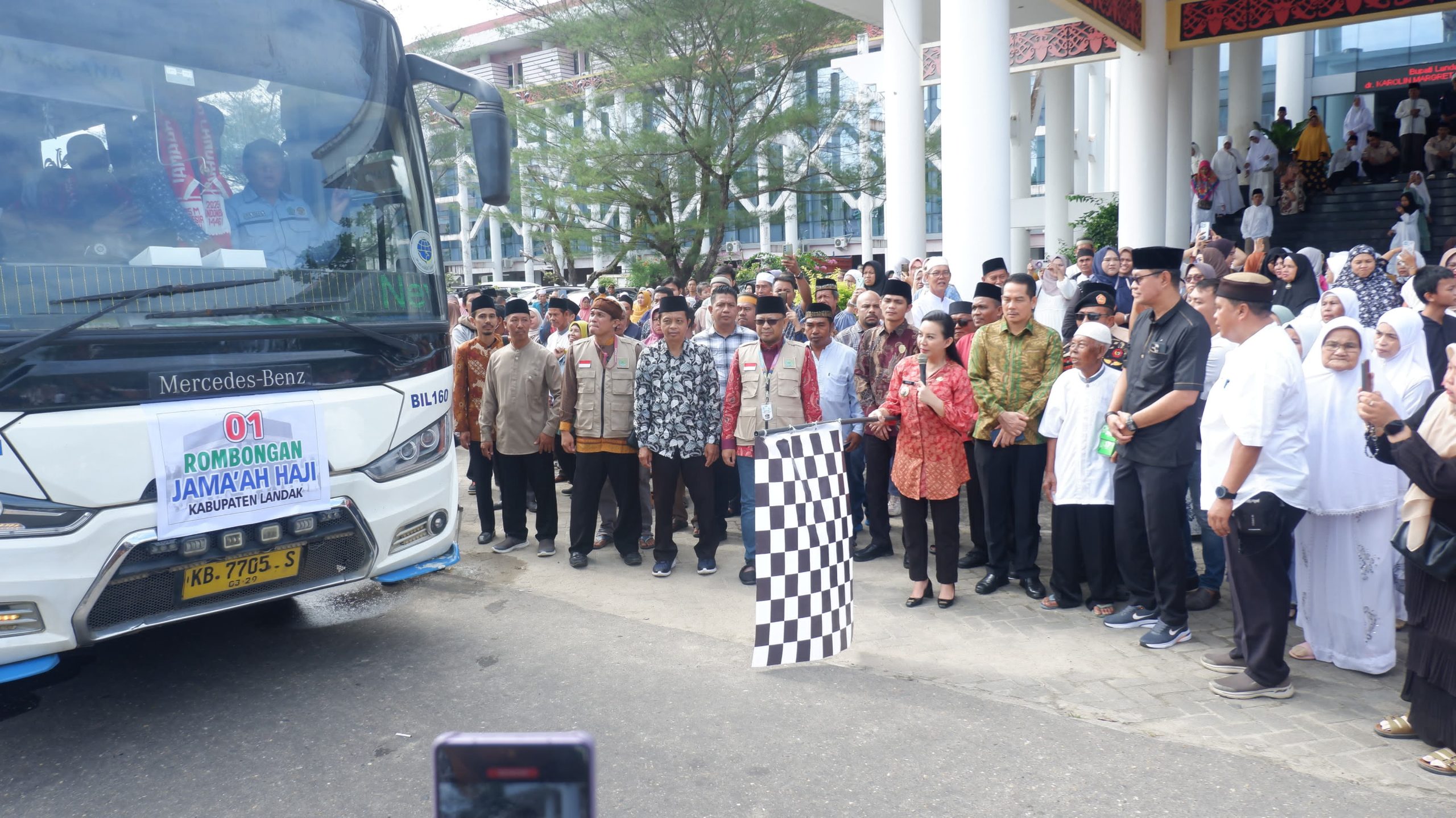 Channeltujuh.com, NGABANG – Pemerintah Kabupaten (Pemkab) Landak melaksanakan prosesi pelepasan keberangkatan calon jemaah haji di Aula Kantor Bupati Landak, Ngabang, Kabupaten Landak, Provinsi Kalimantan Barat.