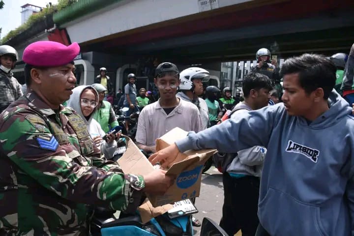 Salah seorang pengemudi ojek online mengapresiasi langkah persuasif yang dilakukan oleh TNI dalam menghadapi demonstran.