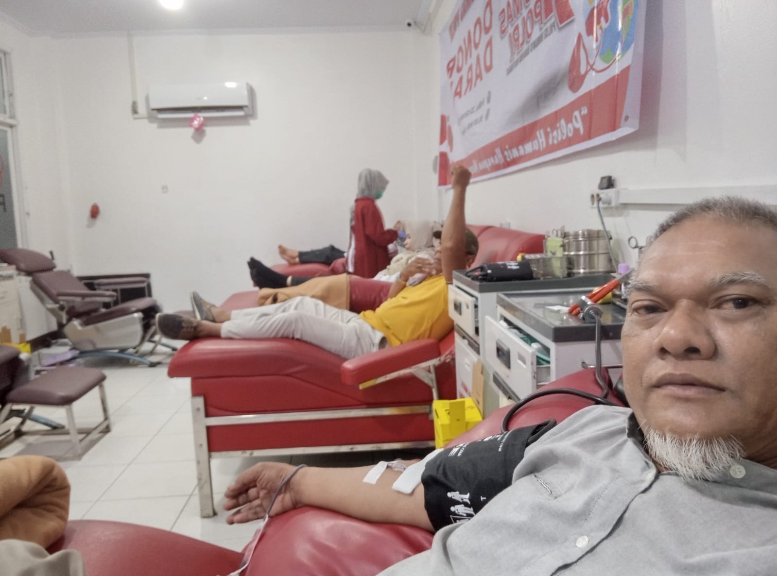 Channeltujuh.com, PONTIANAK – Puluhan wartawan dari berbagai media baik cetak, online, elektronik serta pengurus Persatuan Wartawan Indonesia (PWI) Kalimantan Barat (Kalbar) dan senior PWI Kalbar melakukan donor darah dalam rangka memperingati Hari Ulang Tahun (HUT) Hubungan Masyarakat (Humas) Kepolisian Republik Indonesia (Polri) ke 74 di Kantor Palang Merah Indonesia (PMI) Kota Pontianak, Provinsi Kalimantan Barat.