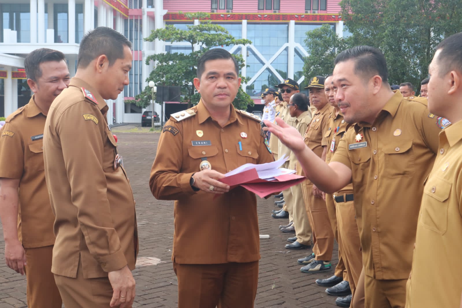 Erani saat membacakan arahan Bupati Landak menyampaikan ucapan terima kasih kepada seluruh ASN yang telah hadir mengikuti apel pengecekan.