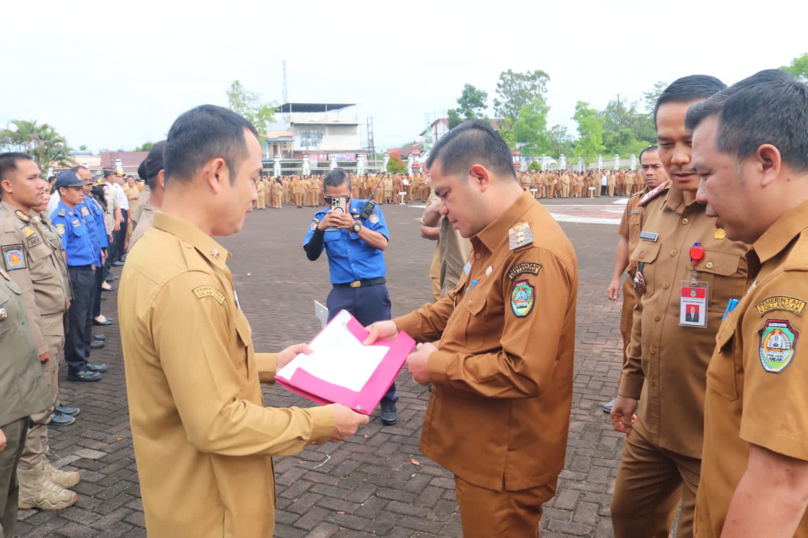 Erani saat membacakan arahan Bupati Landak menyampaikan ucapan terima kasih kepada seluruh ASN yang telah hadir mengikuti apel pengecekan.