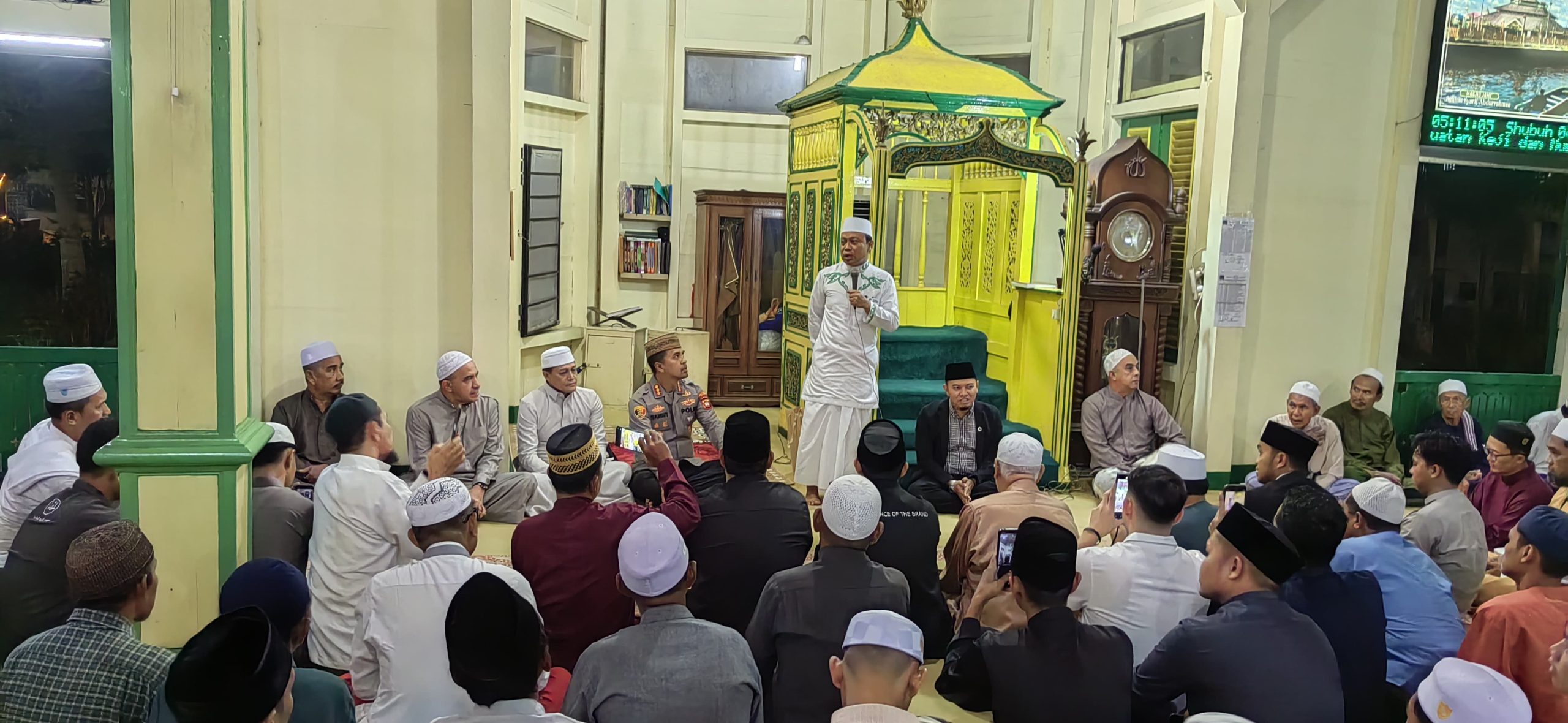 Kegiatan tersebut diisi dengan Shalat Subuh berjamaah bersama masyarakat serta tausyiah singkat dalam rangka meningkatkan keimanan dan mempererat silaturahmi antara kepolisian dengan masyarakat selama bulan Ramadhan.