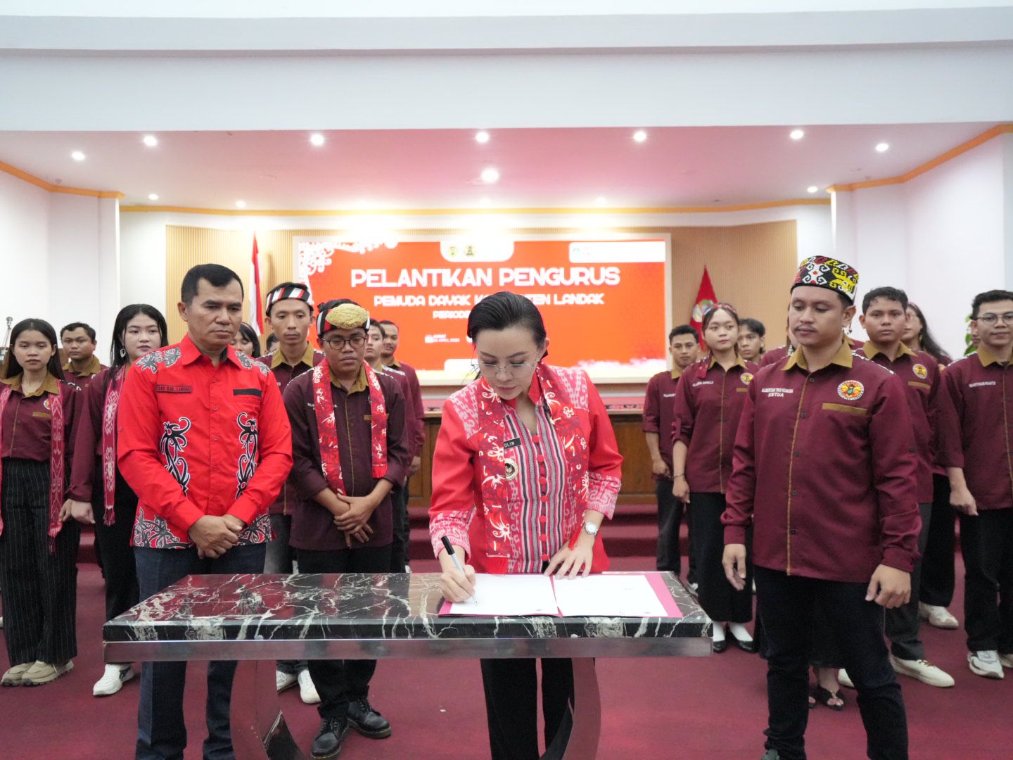 Channeltujuh.com, NGABANG – Bupati Landak, Karolin Margret Natasa, secara resmi melantik jajaran pengurus Pemuda Dayak Kabupaten Landak, di Aula Besar Kantor Bupati Landak, Ngabang, Provinsi Kalimantan Barat, Jumat 24 April 26.